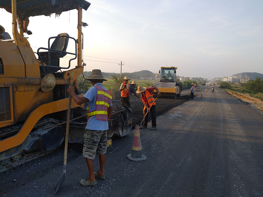 2017年 黃付線惠民工程基層攤鋪施工現(xiàn)場